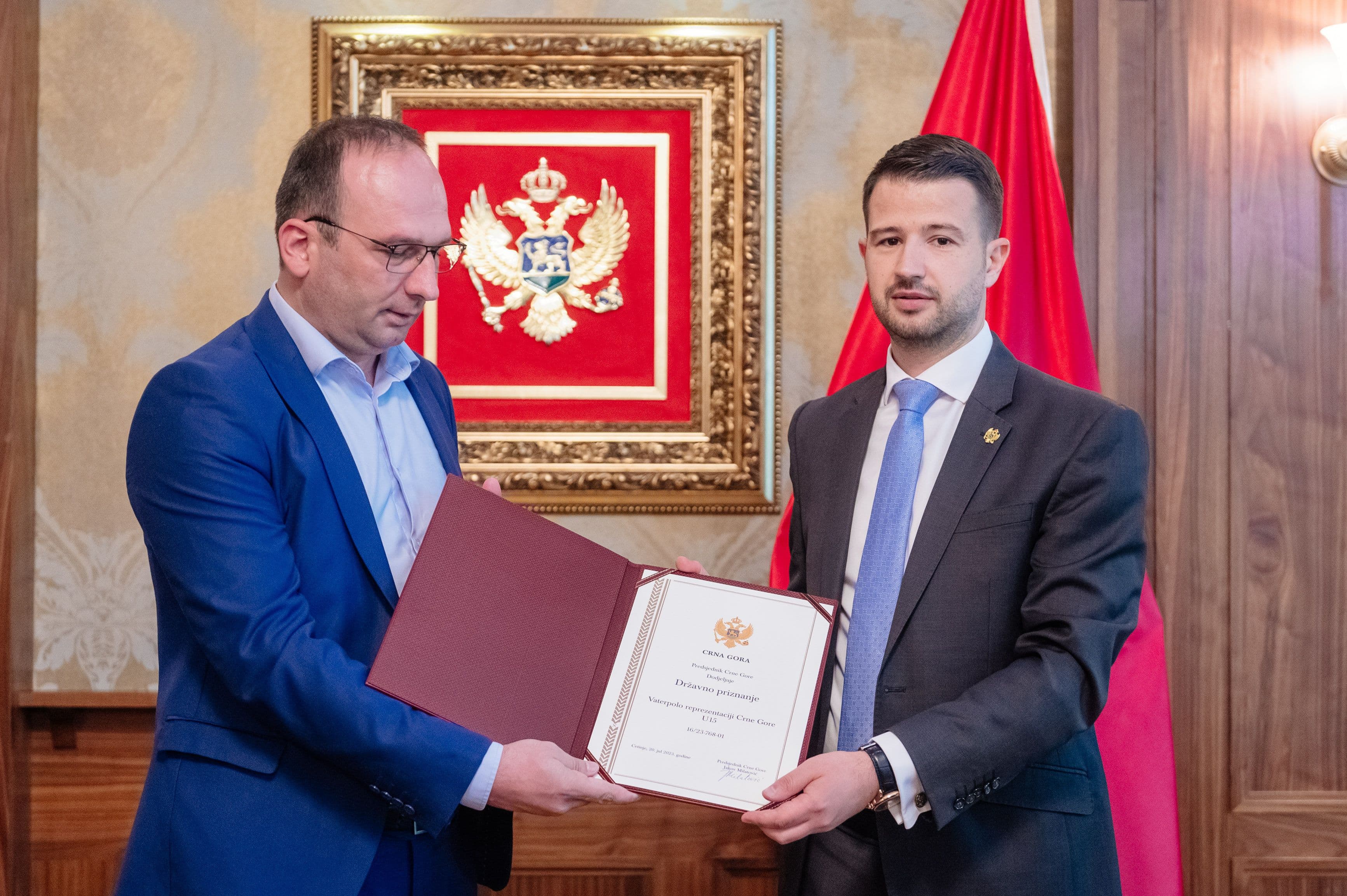 Predsjednik Milatović organizovao svečani prijem za kadetsku vaterpolo selekciju Crne Gore